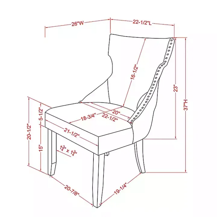 - Chairs measure 22.5L x 26W x 37H in. each; seat measures 20.5H in.
