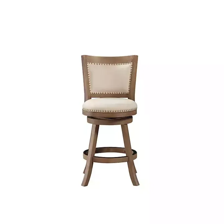 This Linen and Driftwood Nailhead Swivel Counter Stool will fit perfectly at your kitchen counter. Its light, natural finishes will go with any decor! Plus, you’ll love its 360 degree swivel design and brass nailhead accents.