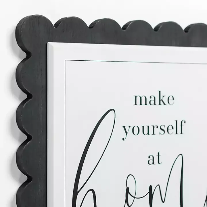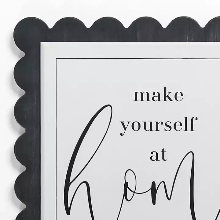 Warmly welcome loved ones into your home with this Make Yourself at Home Scalloped Wall Plaque. Its scalloped edges will bring charming texture to your walls!