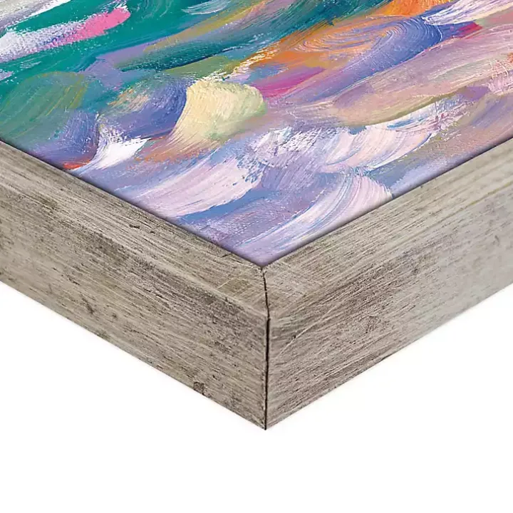 Admire the breathtaking beauty of the coast with this Mediterranean Sunset Framed Canvas Art Print. Fluffy clouds and cotton candy colors lend a dreamlike quality to this impressionist scene.