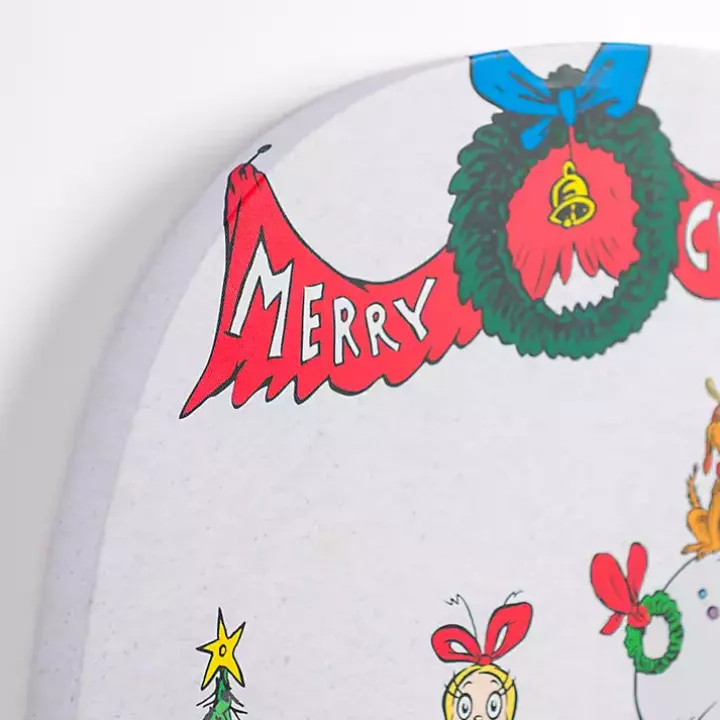 Celebrate the season with the iconic characters from Whoville! Our Merry Christmas Grinch Canvas Wall Plaque will bring a touch of whimsy and nostalgic charm to your home!
