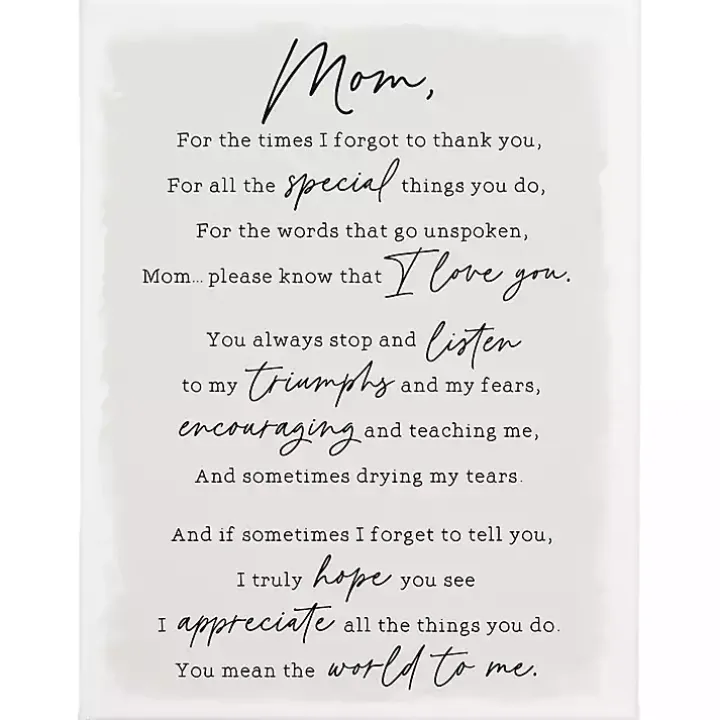 Put a big smile on mom’s face with this Message to Mom Canvas Wall Plaque. Featuring a sweet, heartfelt letter, this piece is sure to earn a spot on her wall!
