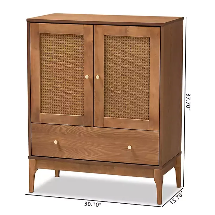 Elevate your home with our Mid-Century Modern Rattan Walnut Cabinet! This sophisticated cabinet will give your living room or entryway added storage and a stylish upgrade!