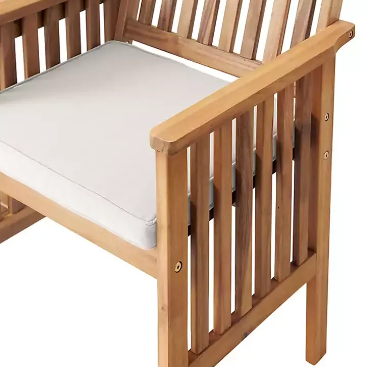 Grab a friend and take your cozy conversations outdoors! This Natural Acacia Wood Ivory Cushion 3-pc. Patio Set features an integrated table that connects both chairs, resulting in a unique, compact design.