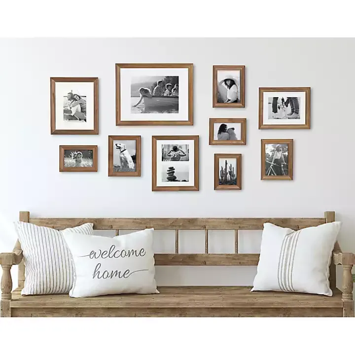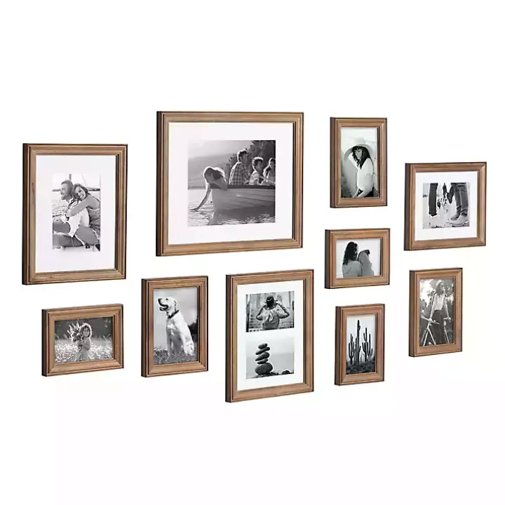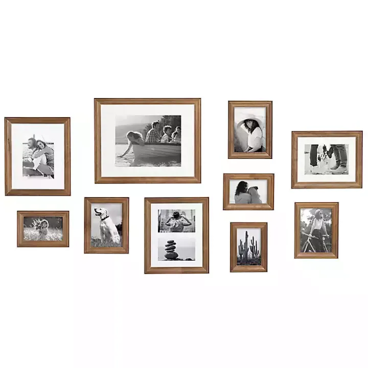 This Natural Brown 10-pc. Gallery Wall Frame Set has a unique, antique-like finish that will complement your decor. It will draw focus to the moments and memories you’ve captured!