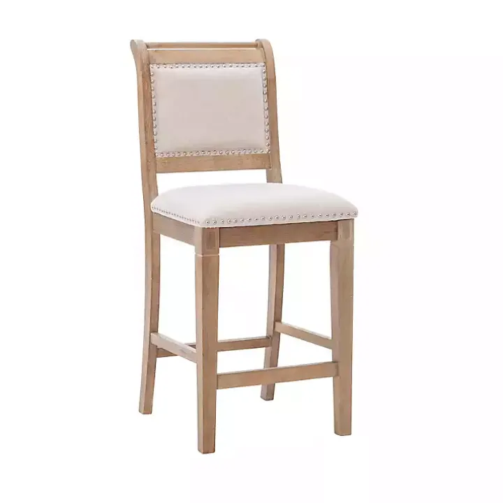 Bring French farmhouse style to your kitchen counters with our Natural Upholstered Wood Frame Counter Stool! The neutral hues will easily match any kitchen color scheme.