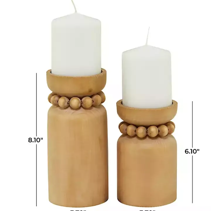 The set of Natural Wood Beaded Candle Holders will add a touch of traditional charm to any display. From farmhouse to boho, these candle holders will blend with a variety of styles.
