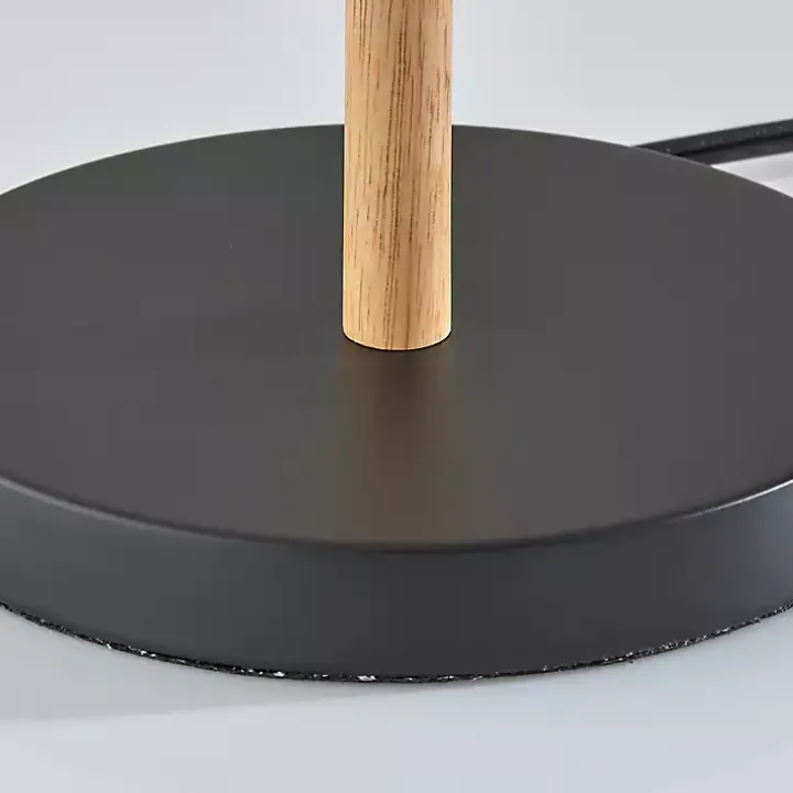 - Black finish with natural tan wood accents