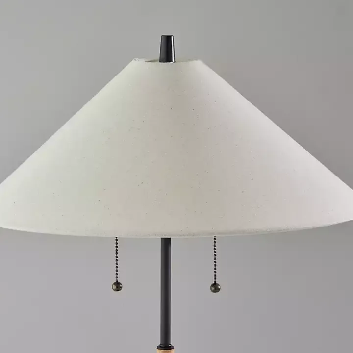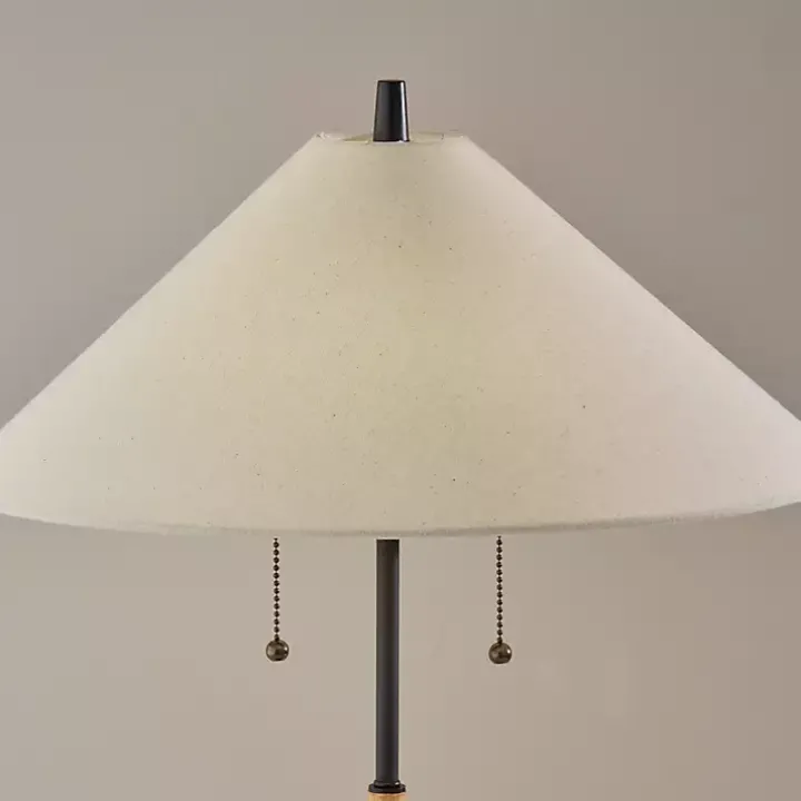 Illuminate your midcentury modern space with the eclectic look of our Natural Wood Flare Two-Bulb Table Lamp! The angular design is sure to make a stylish statement.