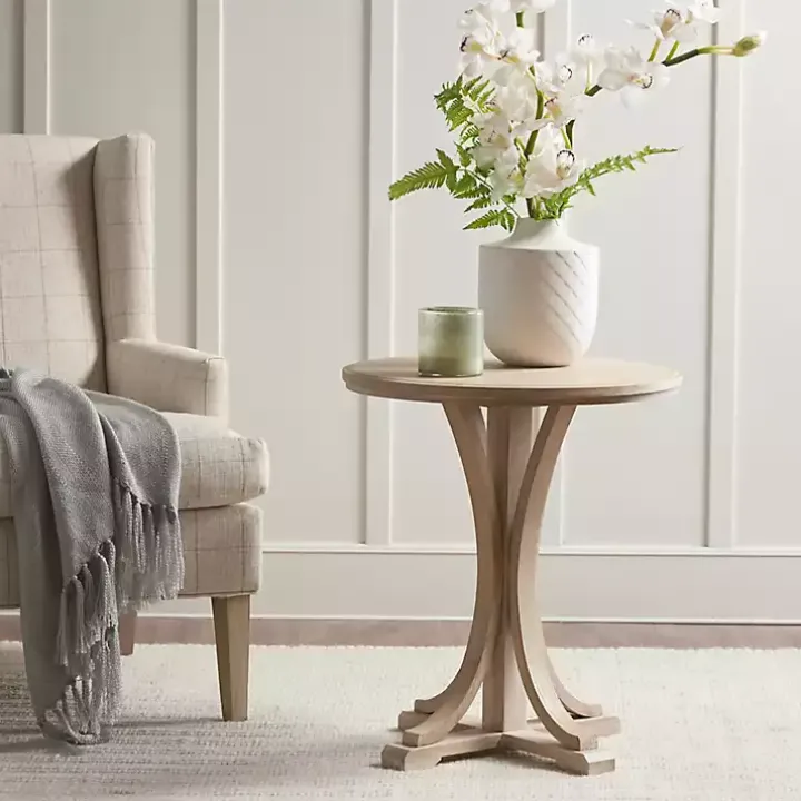 Add something special to your home with our stunning Natural Wood Pedestal Martha Stewart Accent Table. You’ll love the eye-catching design of this beautiful table.