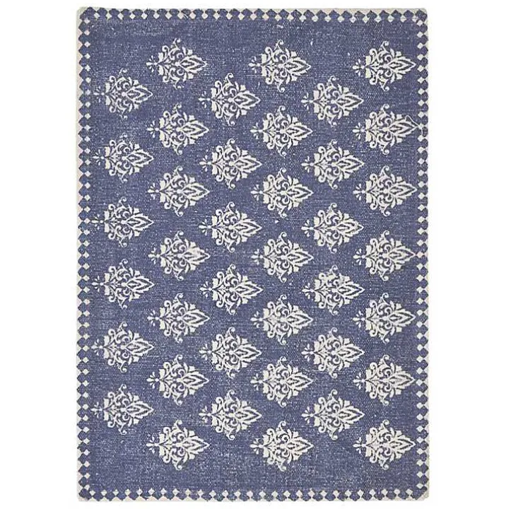 - Hues of navy blue and white