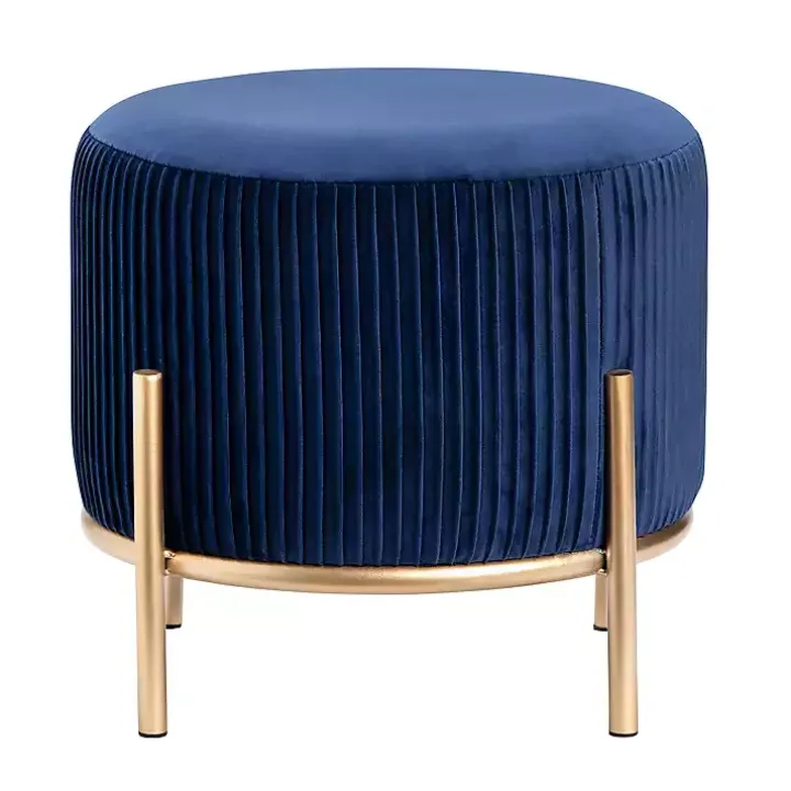 Accent your space with style and texture with this Navy Blue Velvet Upholstered Round Ottoman! You’ll love the look and feel of the pleated velvet upholstery. This soft and chic ottoman will effortlessly elevate your living room or bedroom!