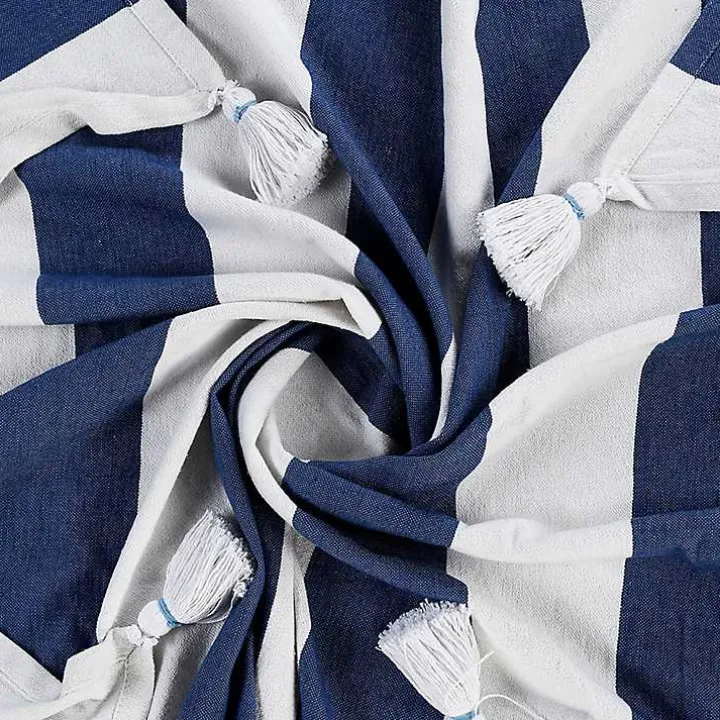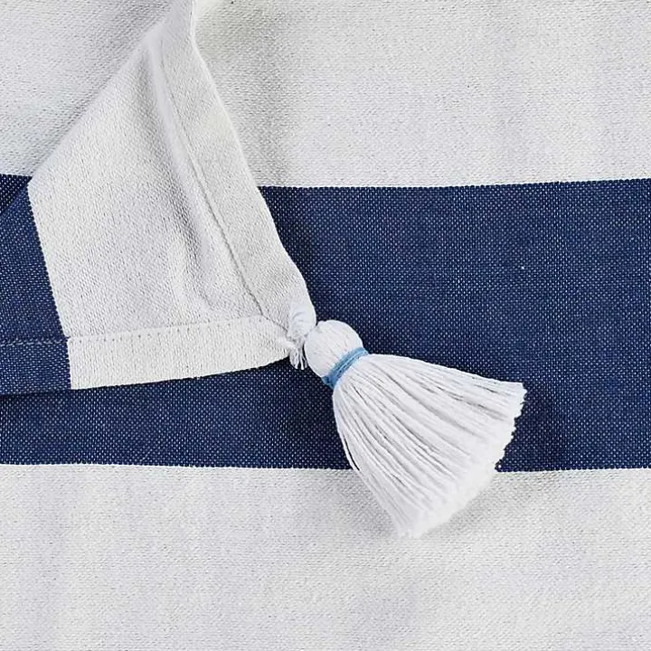 Curl up and get cozy with this delightful throw blanket. The Navy Cabana Stripe Tassel Throw has a beautiful, rich color and simple design that will complement any living space.