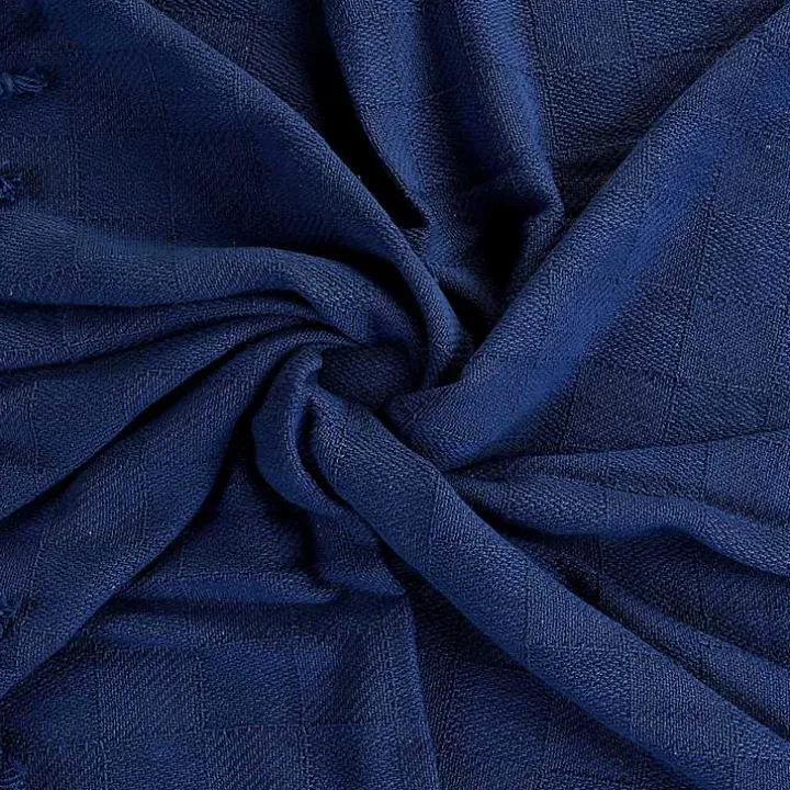 Curl up and get cozy with this delightfully soft throw blanket. The Navy Checkered Weave Fringe Throw has a beautiful, rich color and simple design that will complement any living space.