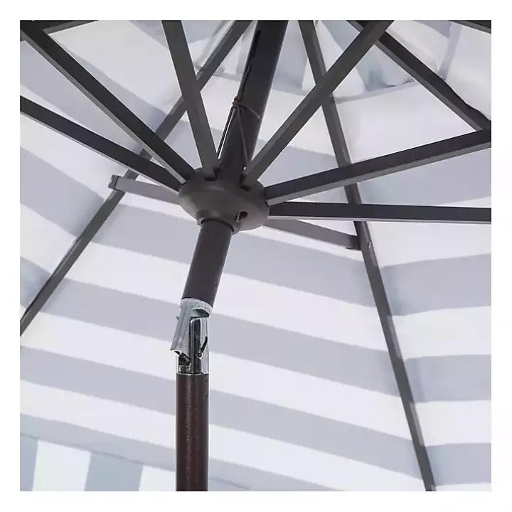Relax in the shade with this Navy Stripe Auto Tilt Outdoor Umbrella. Its classic striped design and easy-to-use crank make it perfect for any backyard.