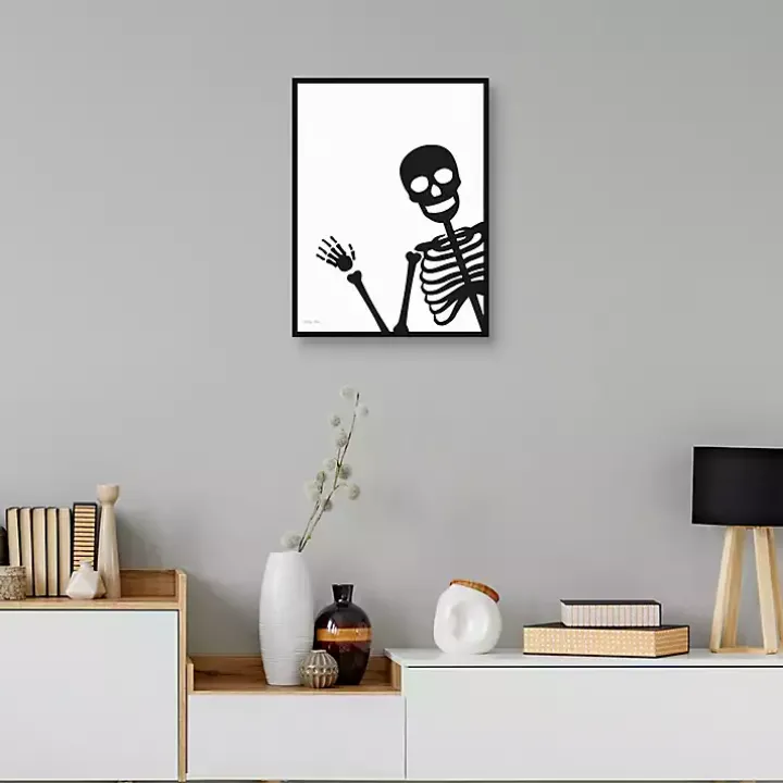 This Peek A Boo Skeleton Framed Canvas Art Print will give guests a spooky welcome! The friendly skeleton puts a whimsical touch on your Halloween decor!