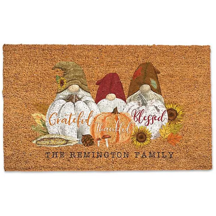 Create a cozy and cute feeling on your front porch with this Personalized Grateful Gnomes Doormat. The adorable creatures will bring good luck and sweet sentiment into the harvest season!
