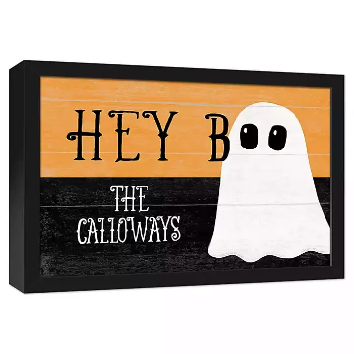Put a custom touch on your haunted house with this Personalized Hey Boo Framed Canvas Print. Its adorable ghost will add a playful charm to your Halloween decor!