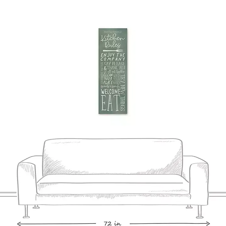 Set the rules with this Personalized Kitchen Rules Canvas Wall Plaque. Enjoy the personalized name, kitchen rules, green canvas, and fun white font.