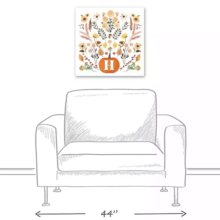 Put a cute, custom touch on your fall decor with this Personalized Monogram Pumpkin Floral Canvas Print. Botanical accent will fill your space with natural beauty!
