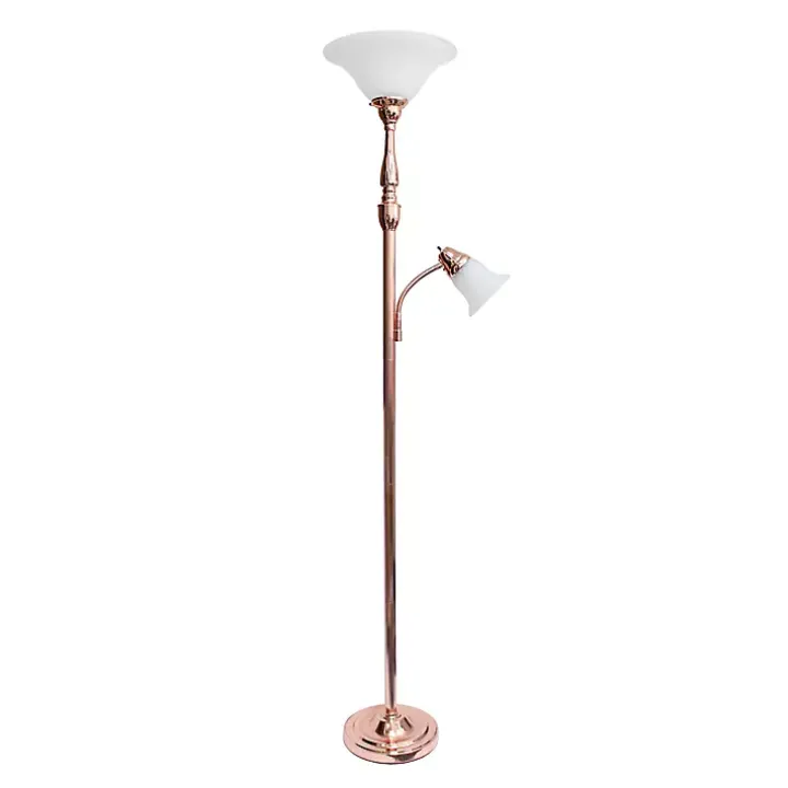 Elevate your home decor with some blushing tones and ample lighting! You’ll love reading under the adjustable arm in this Polished Rose Gold and White Reading Arm Torchiere!