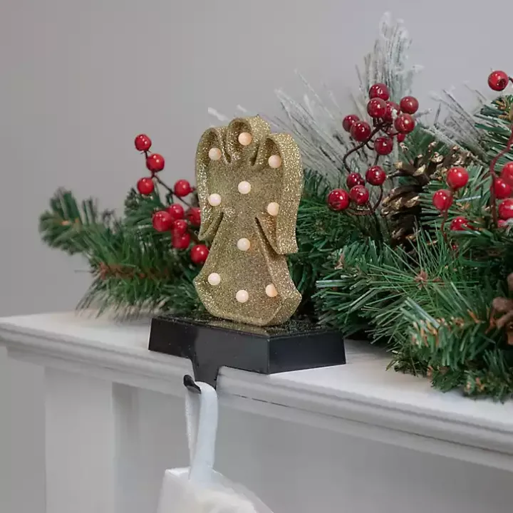 The Pre-lit Angel Christmas Stocking Holder will beautifully illuminate your fireplace! You’ll love how the gold glitter finish adds a glam touch to your décor.