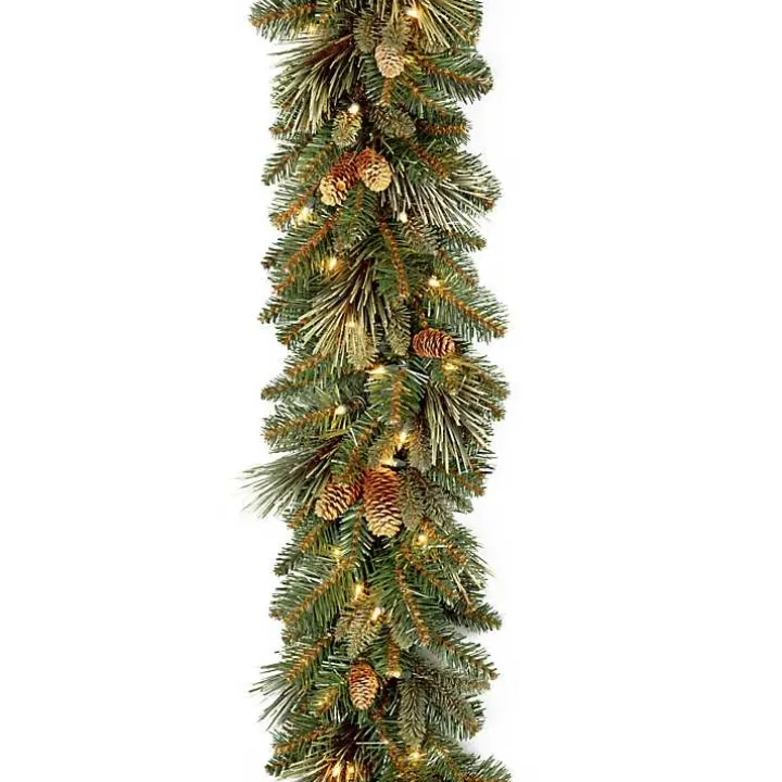 Light up your home with this Pre-Lit Carolina Pine Garland with Flocked Cones! It will look great on your mantle with your stockings hanging underneath.