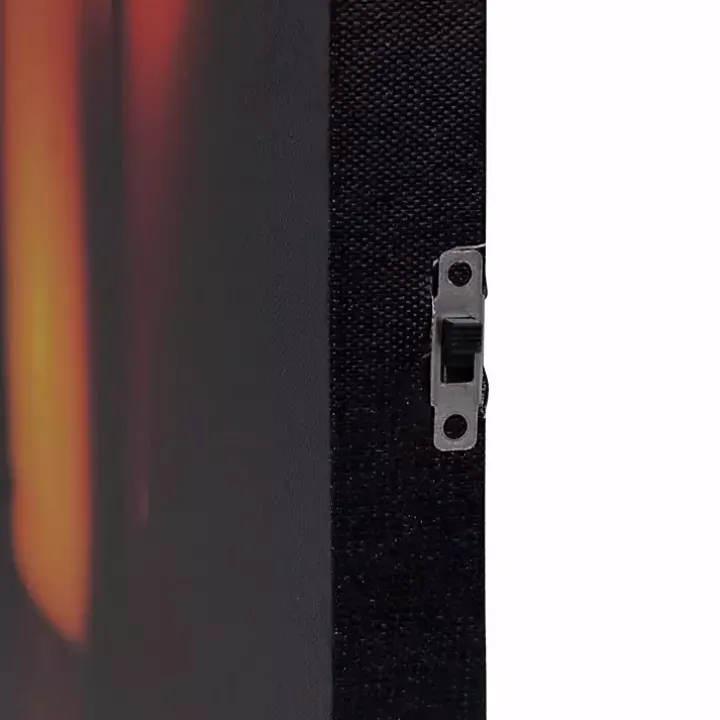Give your haunted house an eerie glow with this Pre-Lit Jack O’ Lantern Canvas Art Print. Its illuminated jack o lanterns and candles will brighten up your Halloween!