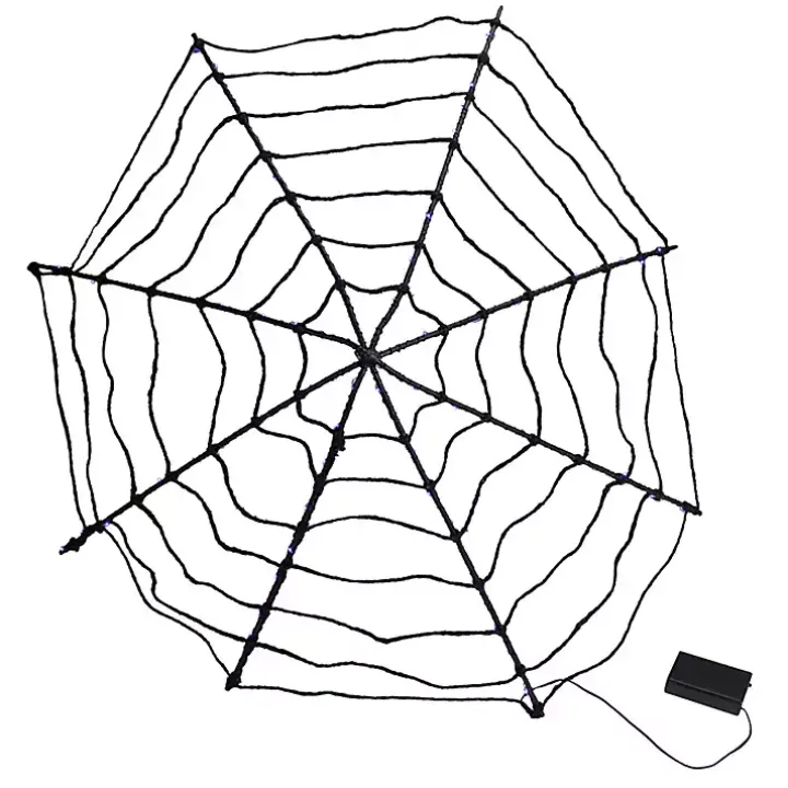 Give your Halloween display a creepy glow with the Purple LED Spider Web Decoration! This battery operated décor can be styled on a wall or simply set on a table without the need of an outlet!