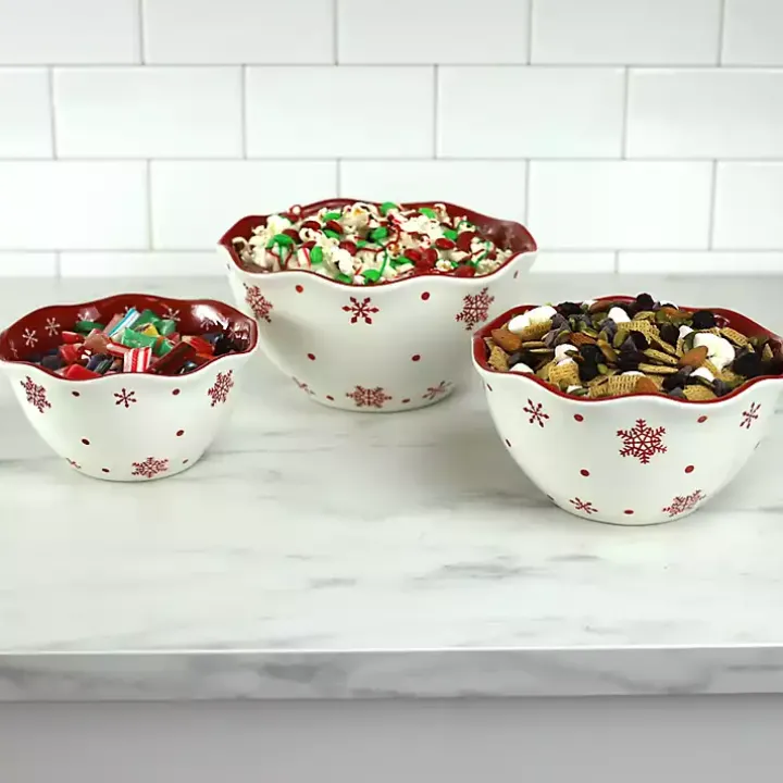 Serve your holiday treats and finger foods with the set of Red and White Nesting Christmas Bowls! The festive snowflake designs will look lovely on your dining table.