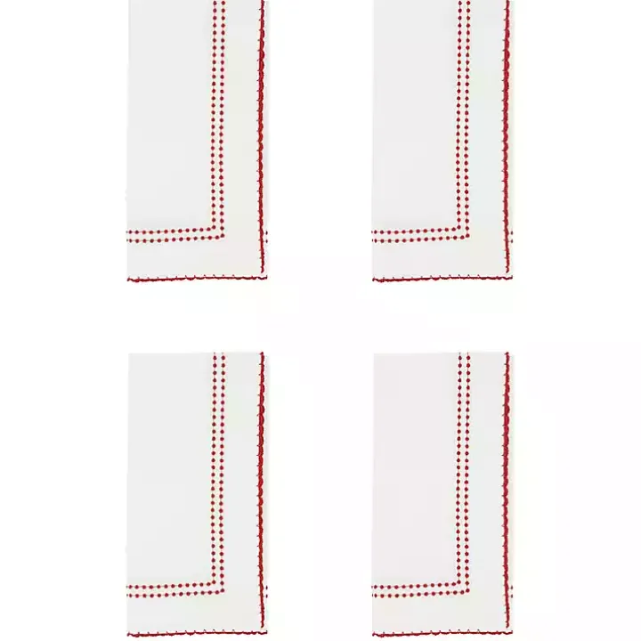 The set of Red Border Embroidered Napkins feature scalloped edges that pop against bright white backgrounds. They’re sure to add charming character to your table setting.