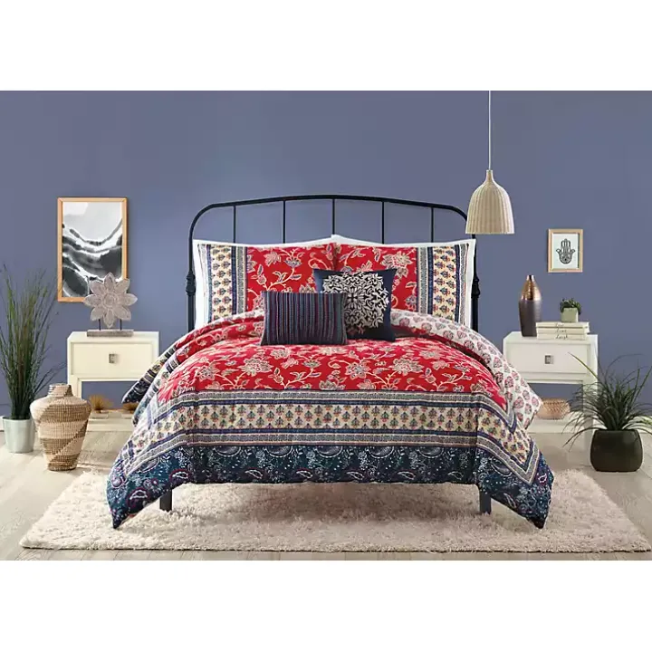 Transform your bed into an oasis of rest and relaxation with our Red Navy Marbella King 5-pc. Comforter Set. This soft and luxurious set creates an inviting atmosphere that you’ll love climbing into after a long day!
