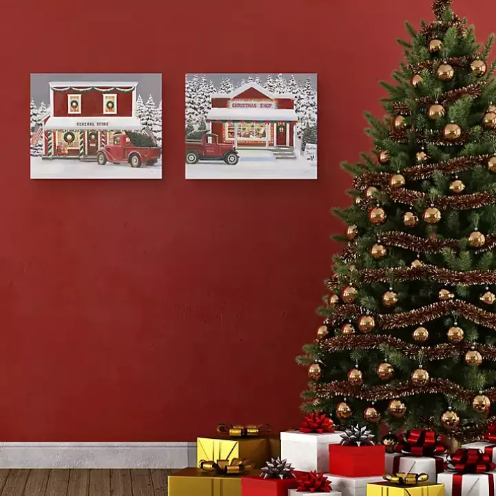 Bring some small town charm into your home with this set of Red Truck Christmas Canvas Art Prints! These festive scenes will give your holiday guests a warm and fuzzy feeling.