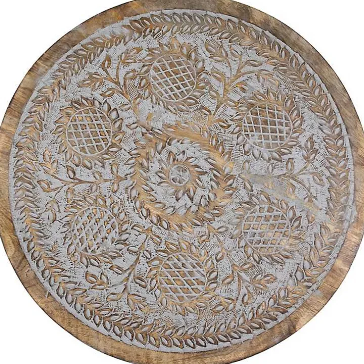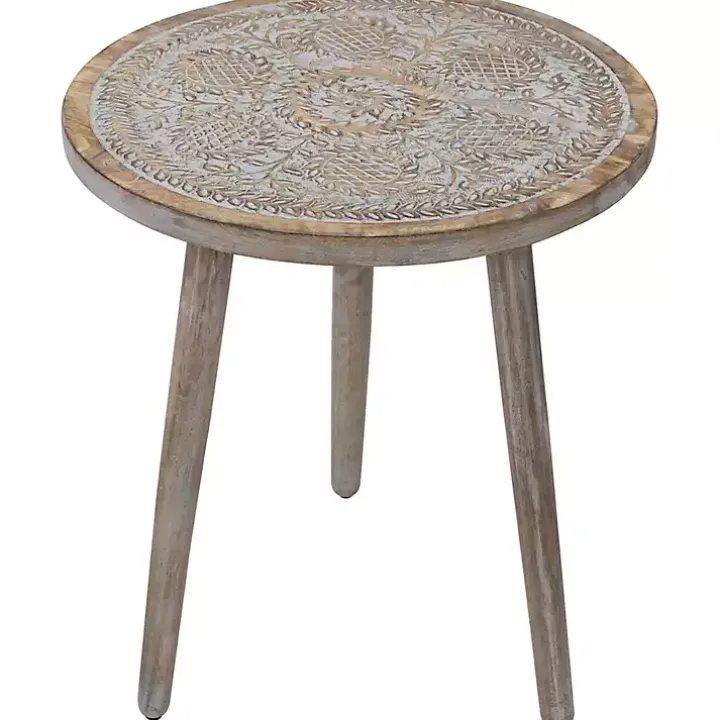 Bring a sense of rustic elegance to any space with the Round Antique Gray Engraved Accent Table. Detailed with beautiful botanical patterns, it will look lovely with boho and farmhouse decor!