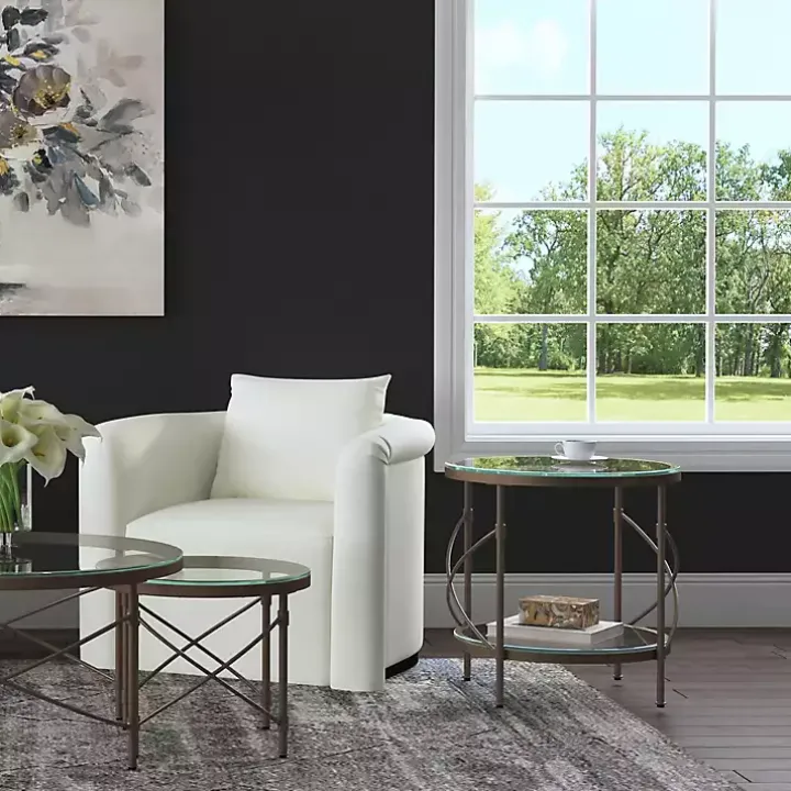 Update your space with the modern style of this Round Bronze Metal and Glass Accent Table. Featuring chic glass table tops and an elegant design, it’s the perfect way to bring a new look to your home!