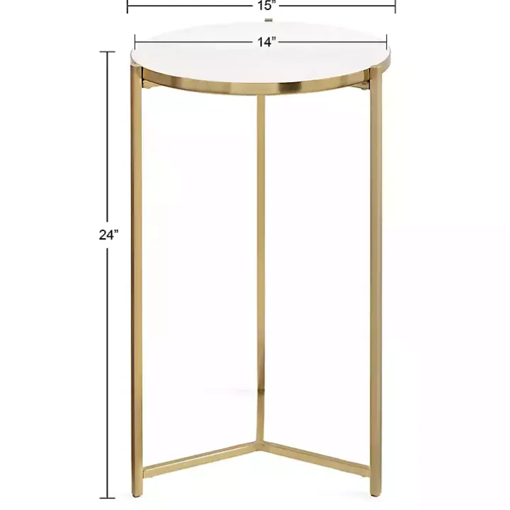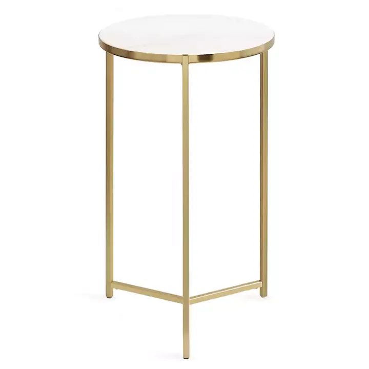 This Round Gold Aguilar Accent Table is a sophisticated accent piece that brings elevated style and glamour to any space in your home. The premium tabletop is supported by a polished, metal frame with a sleek finish, giving it a glamorous look that stands out.