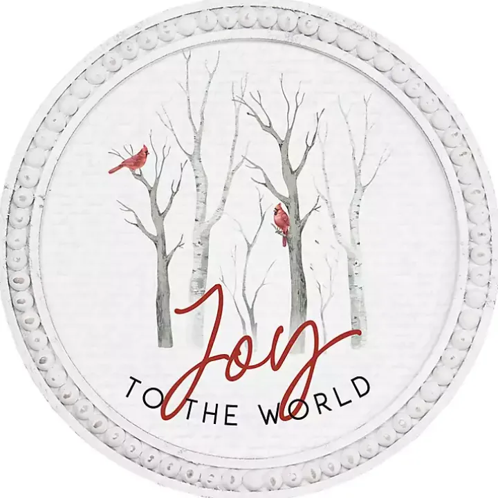 Transform your walls for winter with this Round Joy to the World Cardinals Wall Plaque. Its charming cardinals will bring a quaint, quiet feeling to your home!