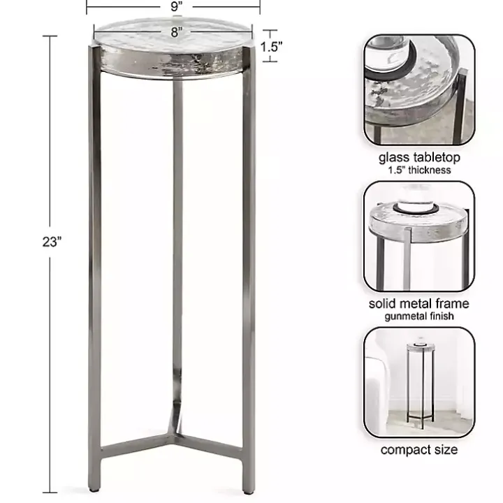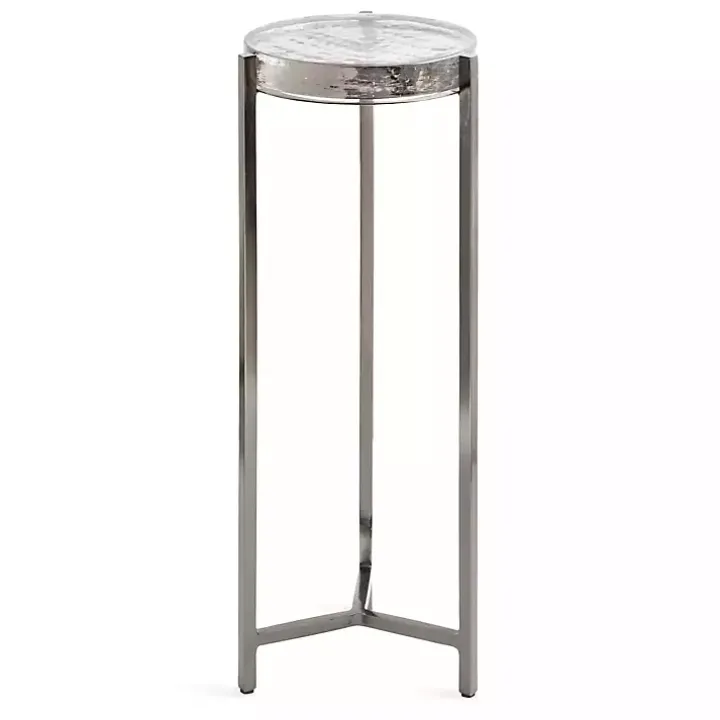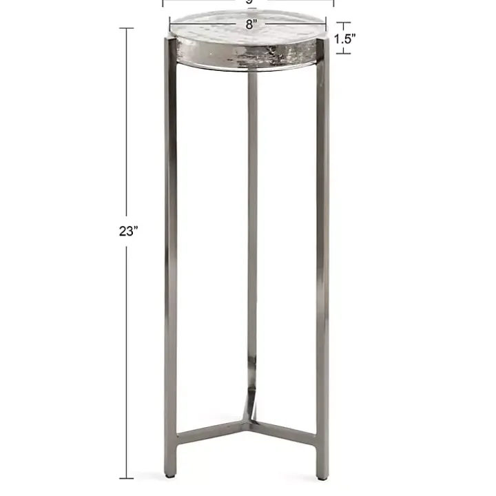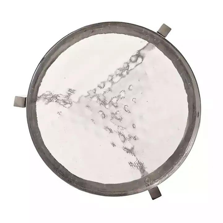 This Round Pewter Aguilar Accent Table is a sophisticated accent piece that brings elevated style and glamour to any space in your home. The premium tabletop is supported by a polished, metal frame with a sleek finish, giving it a glamorous look that stands out.