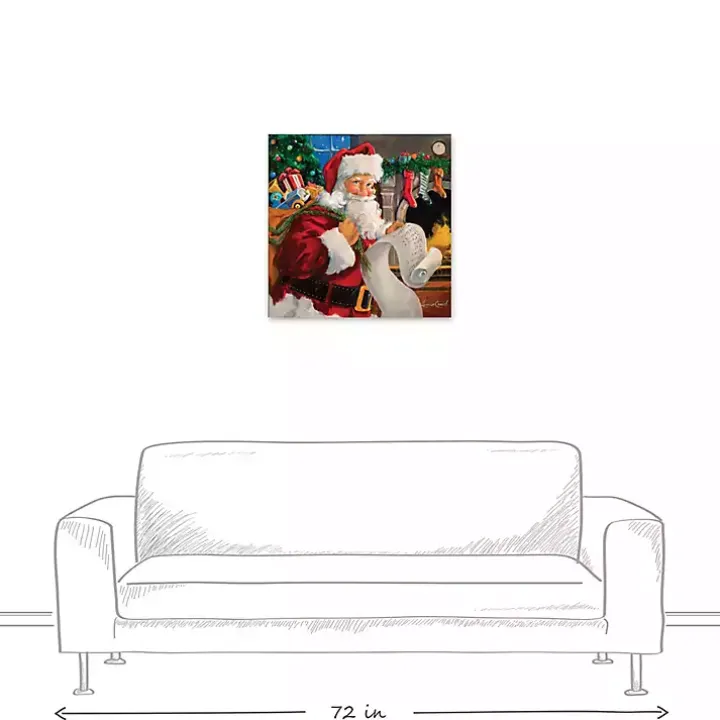 Create a classic Christmas feeling in your home with the Santa Checking His List Canvas Art Print. With his raised eyebrow and knowing look, Santa will remind you to be on your best behavior!
