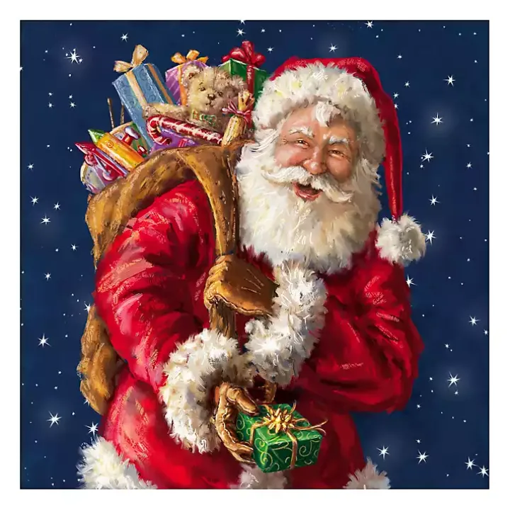 Someone is ready to drop off these special gifts at your house! Our Santa with Gifts and Stars Canvas Art Print will add Christmas magic to your blank walls.