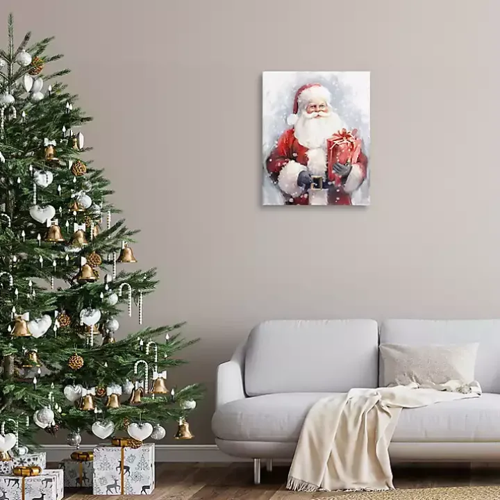 Keep the magic of Christmas alive with this Santa with Red Gift Canvas Art Print. Showcasing St. Nick in a snowy, dreamlike scene, this art print will make spirits bright throughout the holiday season!