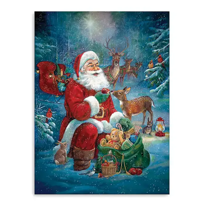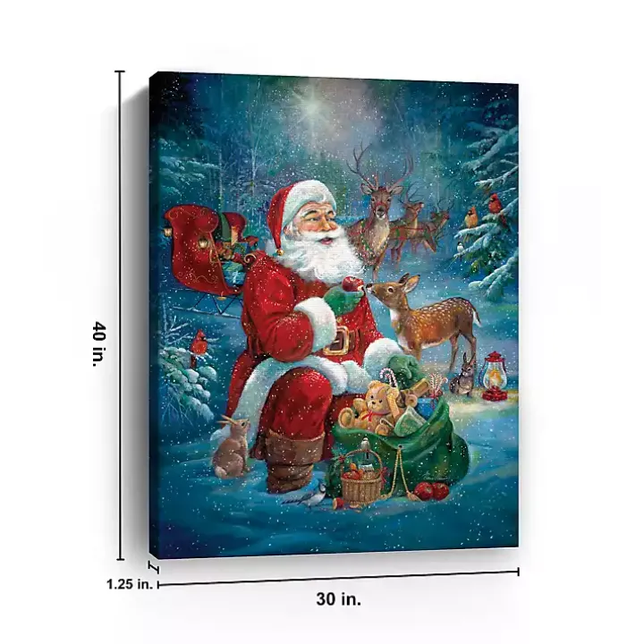 Add to your winter wonderland with this Santa’s Woodland Friends Canvas Art Print. Its snowy scene will bring an element of whimsy to your holiday decor!