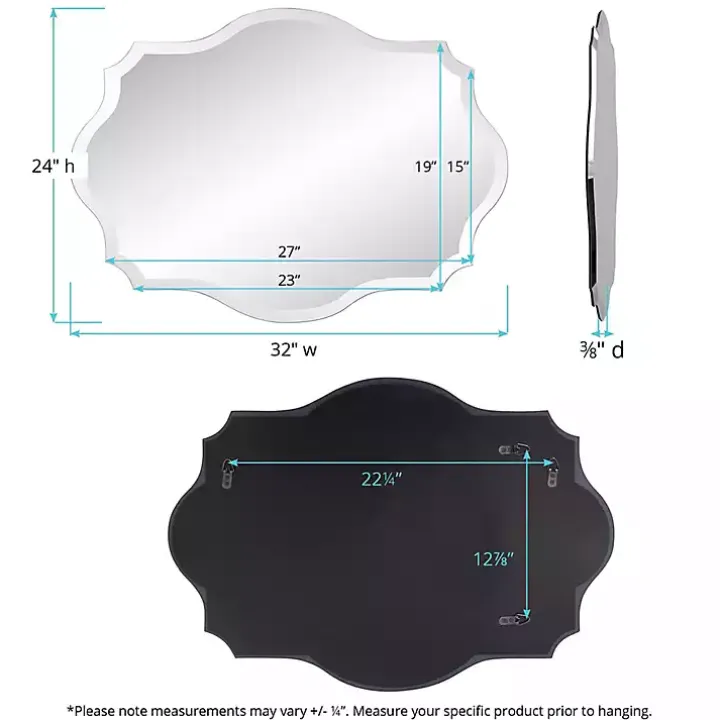 Create a gorgeous focal point in any bathroom or bedroom with the Scalloped Rectangular Frameless Wall Mirror. The beveled design and curved accents enhance its simple yet elegant look.