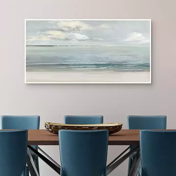 Drift away in the endless sea of the Serene Sound Framed Canvas Art Print. This majestic peace will add a sense of peace into any coastal themed room!