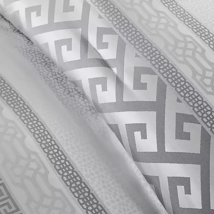 If you want to add elegance and style to your bedroom, this comforter set is perfect. The Silver Geometric Stripes 7-pc. King Comforter Set will look great in any bedroom.