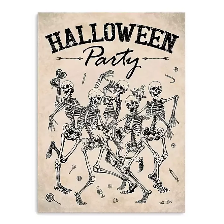 Get down to Monster Mash with our Skeleton Halloween Party Canvas Art Print! These dancing skeletons add a fun touch to Halloween! This print is perfect for you Halloween parties this year.