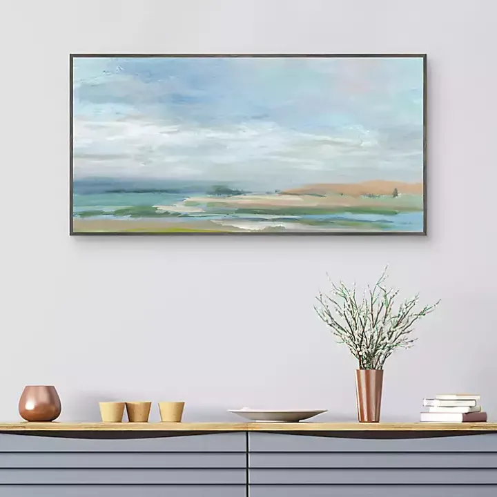 Make your home a sunlit paradise with the captivating Sky From The Bay Framed Canvas Art Print! The harmonious blend of the sea and coastline will leave your guests in awe!