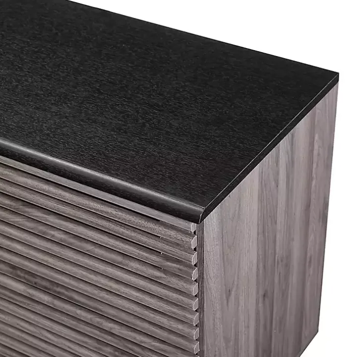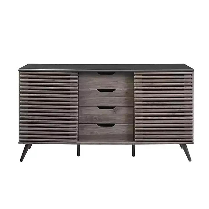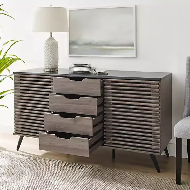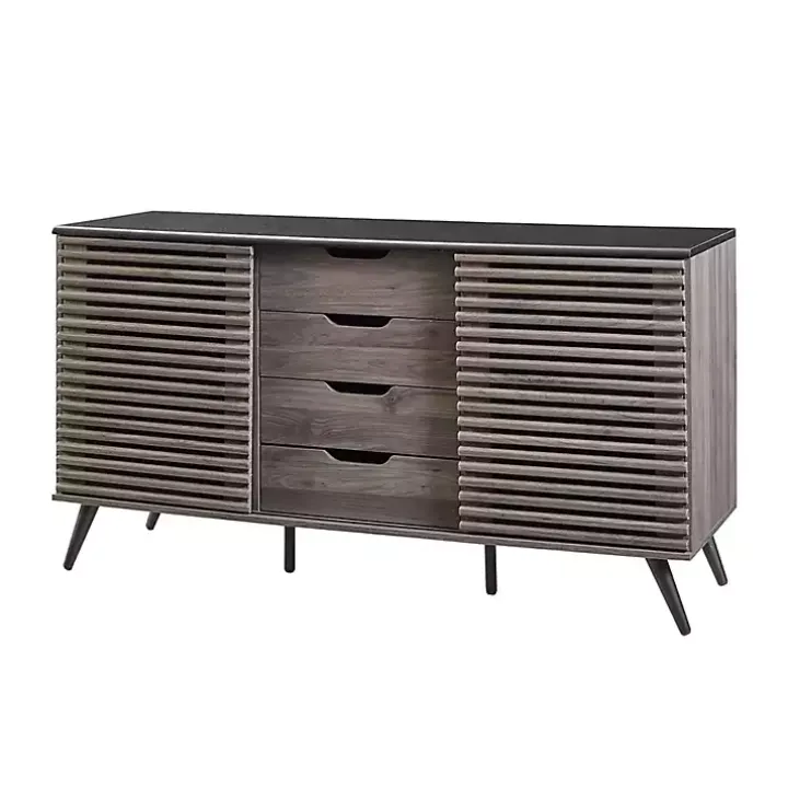 Update your living space or bedroom with our Slate Gray Slatted 4-Drawer Cabinet! This beautiful cabinet will look lovely with your mid-century inspired home.