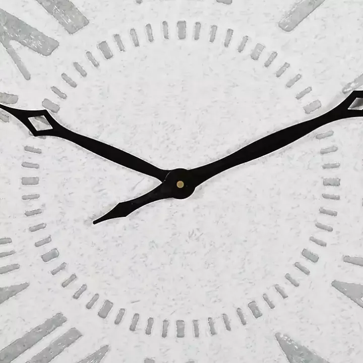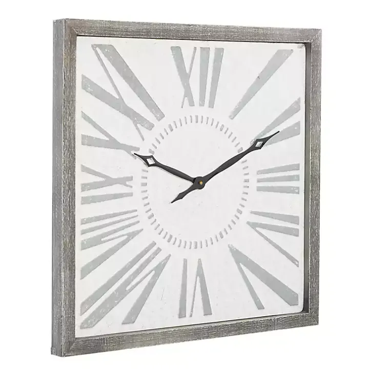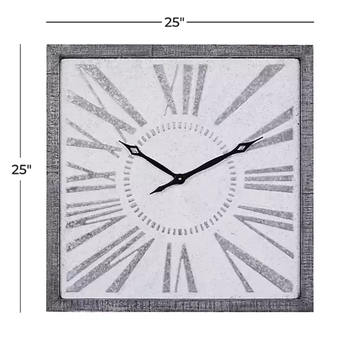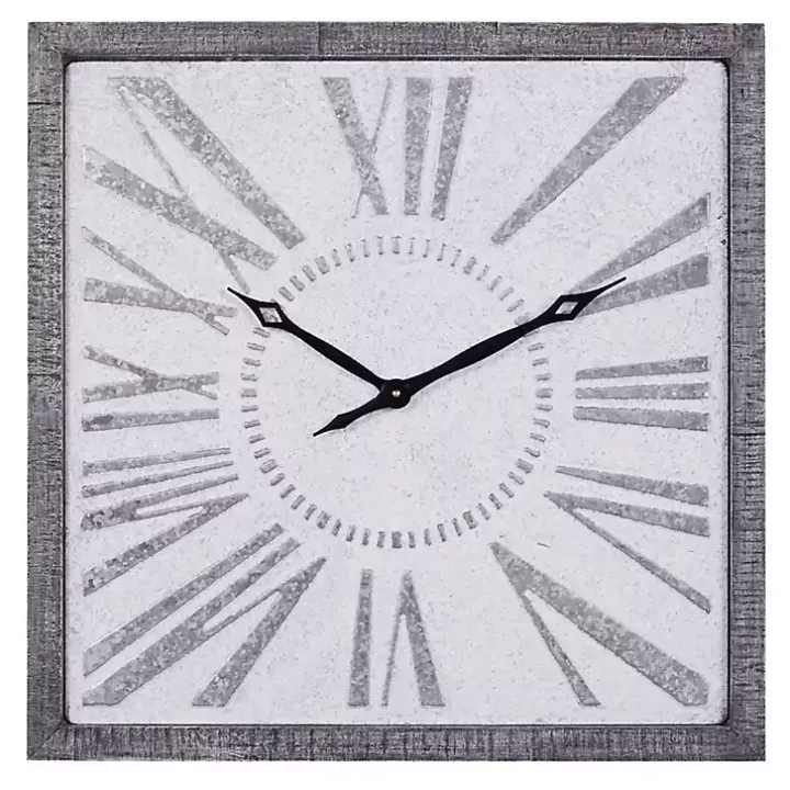 Featuring a unique mix of wood and metal, this Square Galvanized Metal Wall Clock has a chic, rustic look, making it a wonderful accent for farmhouse decor!