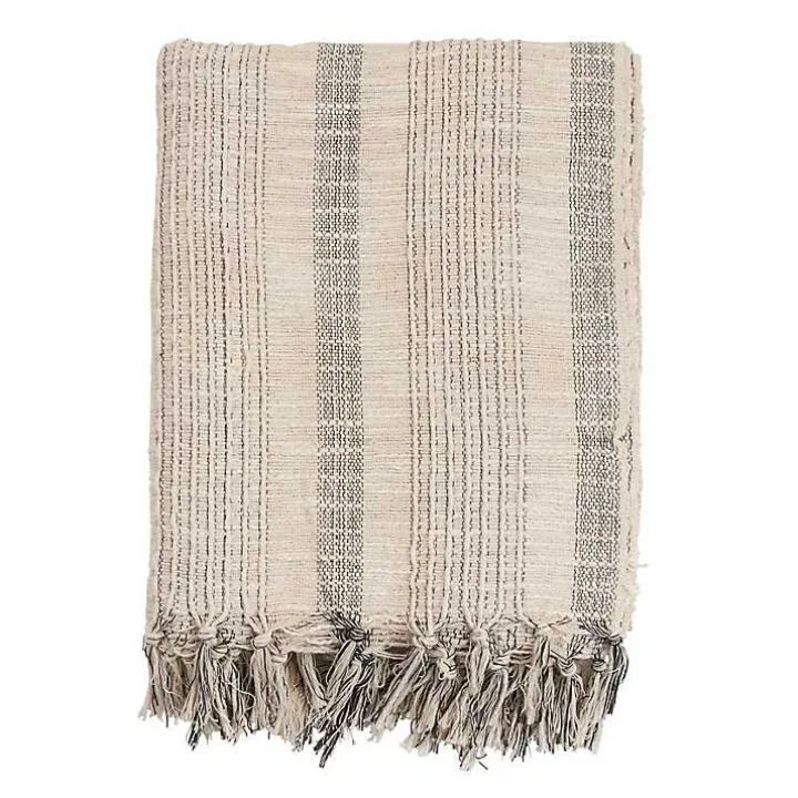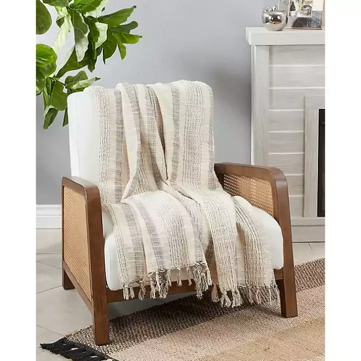 Cuddle up in style with our Stripes and Fringe Cream Throw Blanket. You’ll love snuggling with it or drapping it over your favorite chair or blanket ladder.